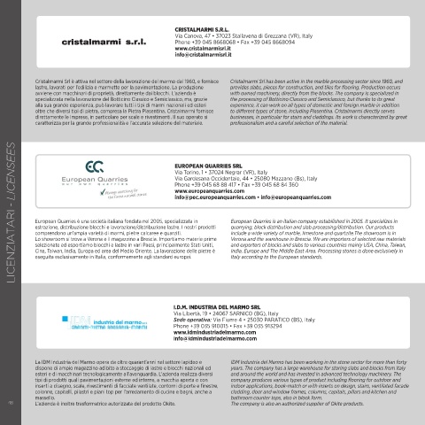 Cristalmarmi Srl è attiva nel settore della lavorazione del marmo dal 1960, e fornisce Cristalmarmi Srl has been active in the marble processing sector since 1960, and
