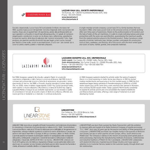 artigianale e industriale, del MADE IN ITALY, nel mondo. LINEARSTONE collabora con and industrial traditions of MADE IN ITALY, worldwide. LINEARSTONE collaborates