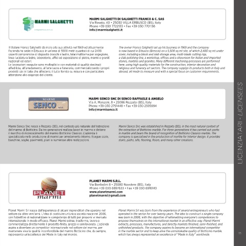 Marmi Senco Snc nasce a Rezzato (BS), nel contesto più naturale dell’estrazione Marmi Senco Snc was established in Rezzato (BS), in the most natural context of LICENZIATARI - LICENSEES