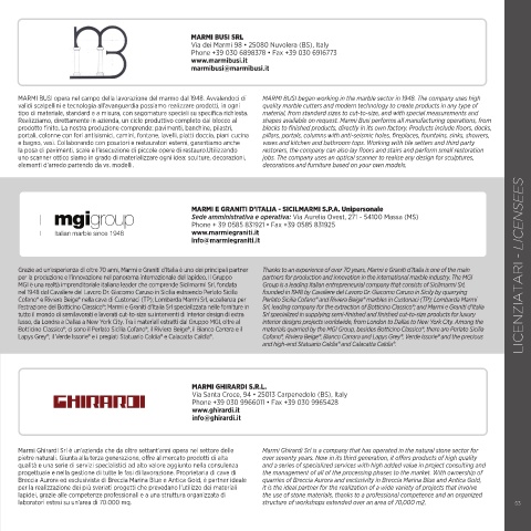 Nel 1986 Giuseppe Lazzarini dà vita alla Lazzarini Marmi in un piccolo In 1986 Giuseppe Lazzarini started his activity under the name of Lazzarini Grazie ad un’esperienza di oltre 70 anni, Marmi e Graniti d’Italia è uno dei principali partner Thanks to an experience of over 70 years, Marmi e Graniti d’Italia is one of the main LICENZIATARI - LICENSEES