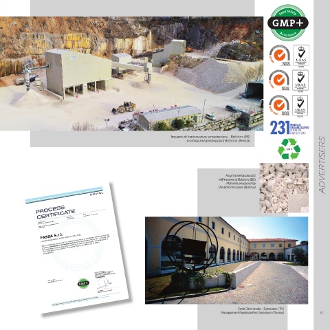 using the material quarried in Botticino for the treatment of water and gases. Botticino plant obtained the GMP+ certification in 2016, which is an internationally recognised Management Representative